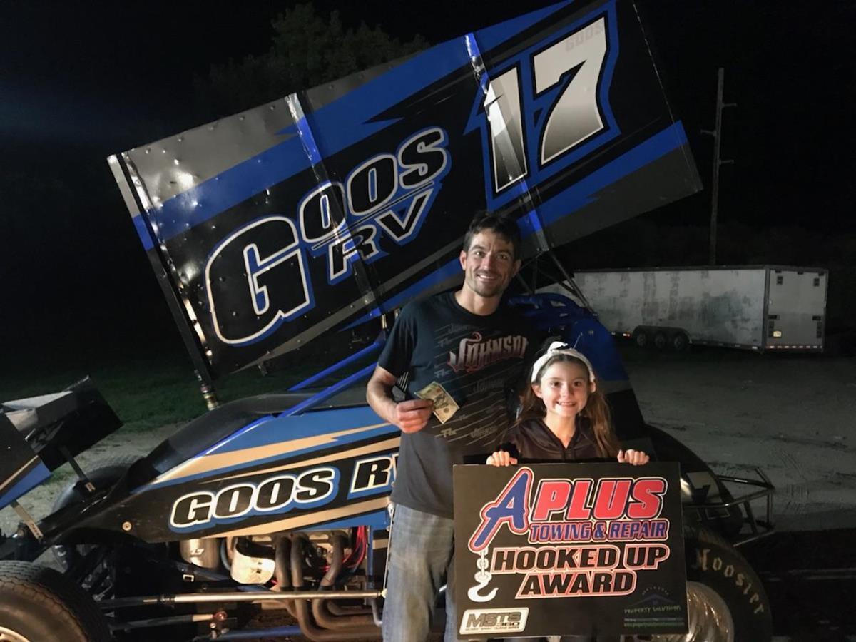 Lee Goos, Jr. had high hopes going into the feature, but trouble on the opening lap damaged the Goos RV #17. The tough break earned Goos the A Plus Towing & Repair Hard Luck Award.