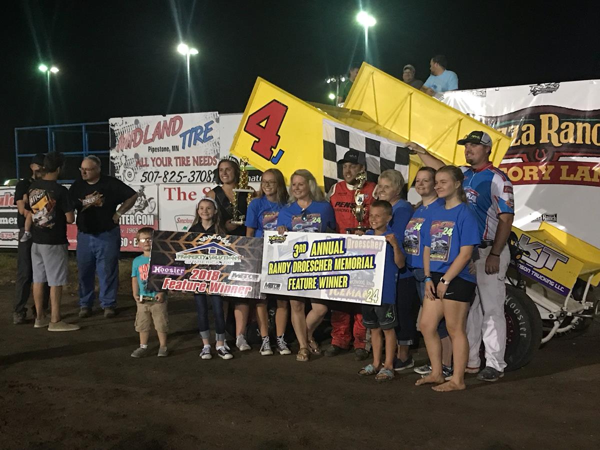 Lee Grosz took home the $2400 payday for the victory at Tuesday’s Randy Droescher Memorial at Rapid Speedway. However, his prizes didn’t end there. The Property Solutions of America Midwest Sprint Touring Series hand out extra awards at each event, and Tuesday’s race had even more.