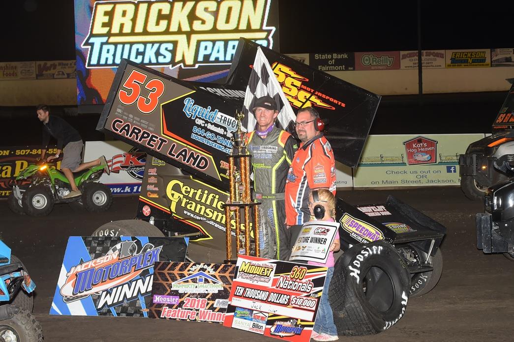 Inside Line Promotions – JACKSON, Minn. (Sept. 2, 2018) – Jack Dover is $10,000 richer after winning a hard-fought and ultra-competitive Midwest Power Equipment 360 Nationals presented by DeKalb/Asgrow main event on Sunday night at Jackson Motorplex.