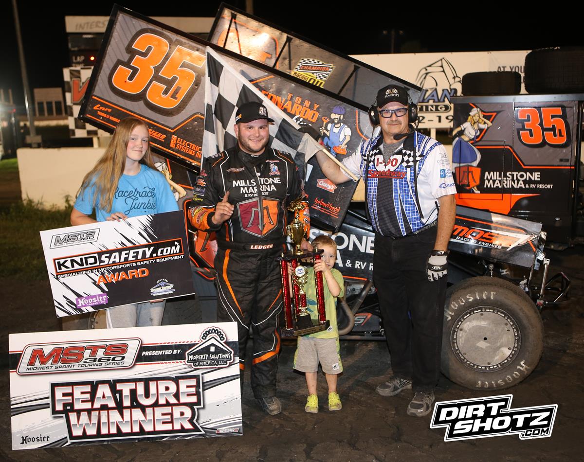 Ledger would have to chase down and pass Goos at lap 14 of the MSTS feature. He would go on to get the win while the battle for second was fierce. Jody Rosenboom would take that spot just ahead of Jack Dover. Goos crossed the line fourth with Ryan Bickett in fifth. Dover would claim the Cressman Sanitation Hard Charger Award for his efforts.