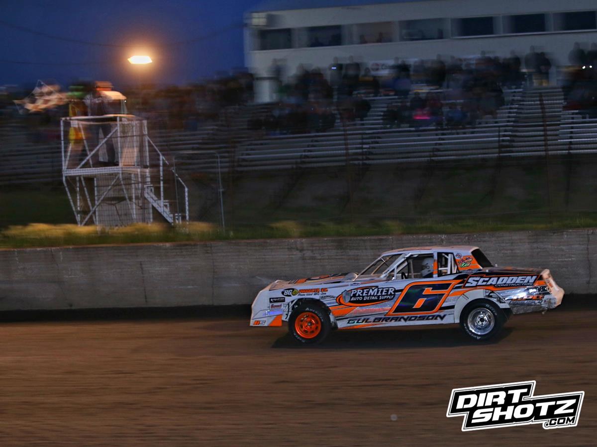 It was career win no. 35 for Dustin Gulbrandson in the LawnSnow.com USRA Hobby Stocks. The multi-time national champion charged from ninth on the grid to the lead at lap number five. Landon Krohn finished a close second from the eighth starting spot, Dylan Andal got his best finish taking third ahead of fourteenth starting Chad Dubac and Joel Norris.