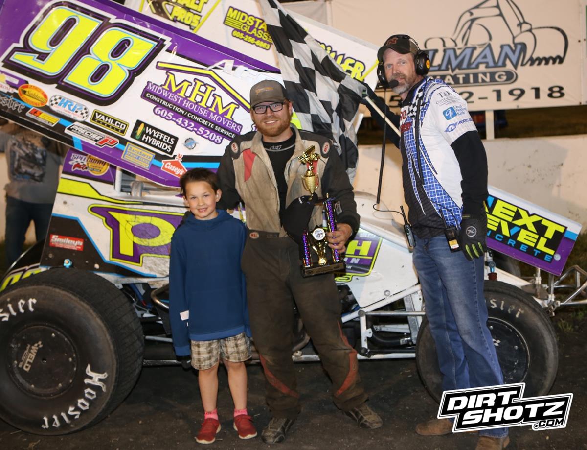 Carson McCarl took the win with the Gunderson Racing MSTS and QualityFreightRate.com Midwest Power Series at I-90 Speedway. Nate Barger took the win in an exciting Spielman Excavating IMCA Sprint Car feature. Meantime, Matt Steuerwald won the First Interstate Bank Late Model Street Stocks, Derek VanVeldhuizen won the Reaves Buildings USRA B-Mods and Dustin Gulbrandson was victorious in the LawnSnow.com USRA Hobby Stocks.