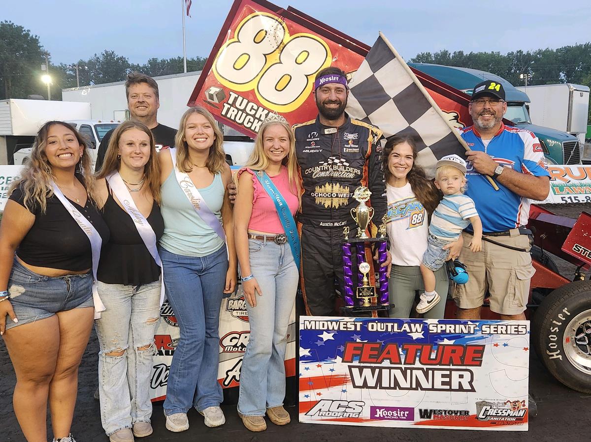 Austin McCarl would not be denied in Wednesday’s series debut at the Hamilton County Speedway. McCarl took the lead at the drop of the green and paced the field all 20 laps to get the victory in front of a large fair-time crowd.