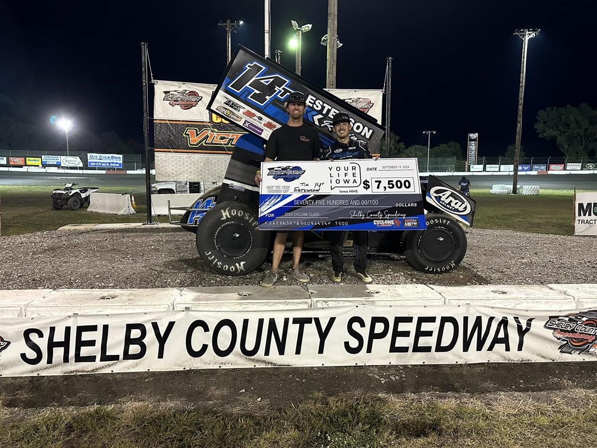 Not only did Estenson secure the Midwest Sprint Touring Series 410 Sprint Cars title, he won the season finale at Shelby County Speedway for the second straight season.
